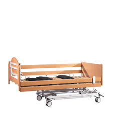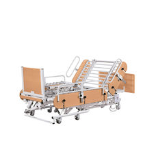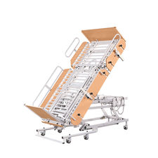 The Multidorm Dekuflex offers decubitus prophylaxis and standing training. With its lateral inclination capability, the stable bed is an alternative to the alternating pressure system, especially if the patient has also been prescribed standing training. For standing training, the special bed can be raised from a horizontal through to a vertical plane up to an angle of 85°.